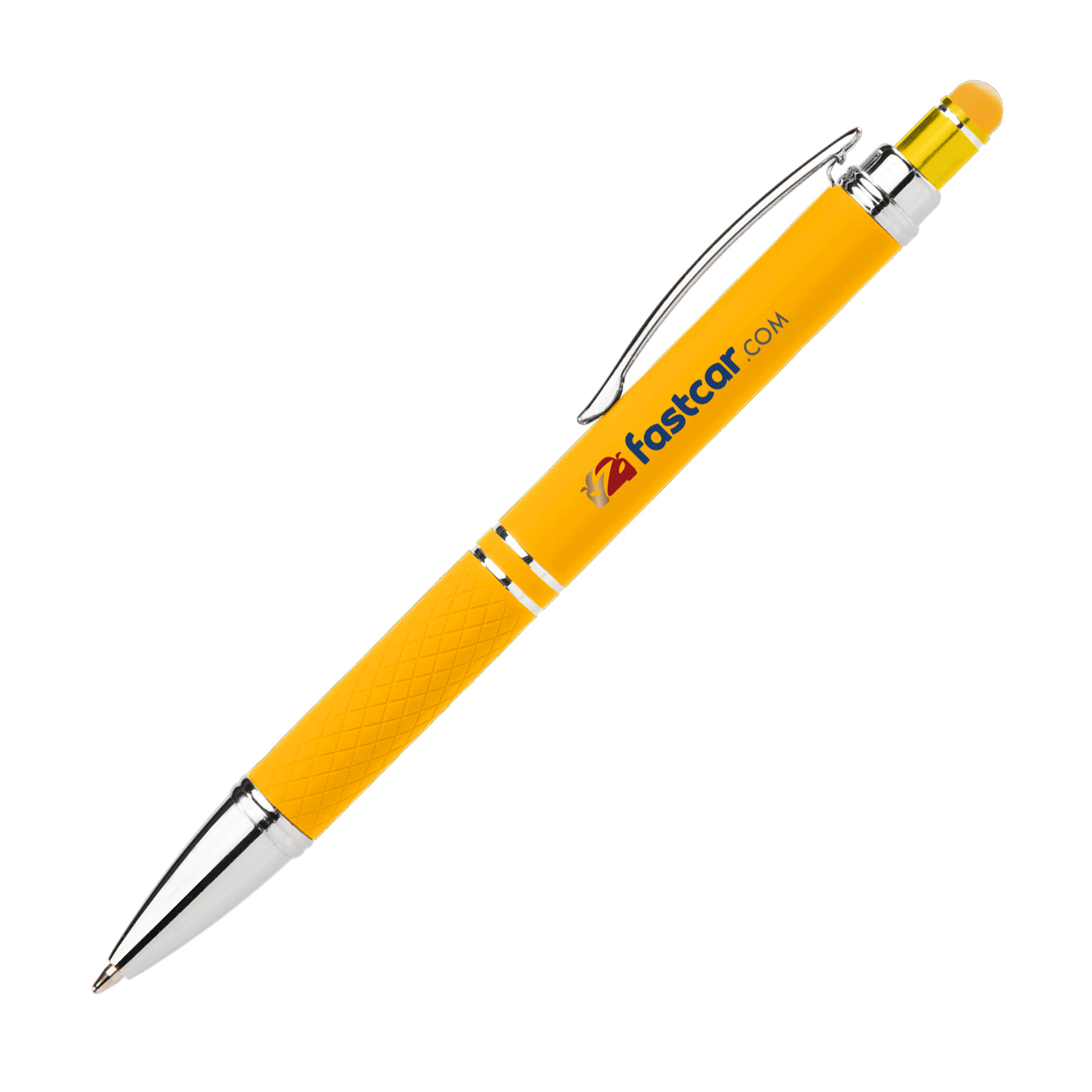 Ihr lasergraviertes Logo auf diesem leuchtenden Gel-Stylus-Kugelschreiber wird garantiert Aufmerksamkeit erregen! Gestalten Sie den Stift mit einer individuellen Botschaft, um Ihr Branding optimal zur Geltung zu bringen. Der „Costa Bright Gel“, auch bekannt als „Diamond Stylus-Gel-Kugelschreiber mit heller Soft-Touch-Beschichtung“ oder „Leuchtender Stylus-Kugelschreiber mit Rautenmuster“, kombiniert lebendige Gel-Tinte mit einem eleganten Design in geschäftlichem Schwarz. Dieser Blickfang bietet alle Details, die Ihre Zielgruppe benötigt, um ihn als erstes zur Hand zu nehmen – sei es zum Ausfüllen eines Formulars, zum Notieren oder zur Nutzung auf einem Smartphone oder Tablet. Mit Ihrer Botschaft, die in Silber auf den Schaft lasergraviert wird, erhalten Sie die perfekte Werbefläche für Ihre Marke.