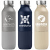 Diese Edelstahlflasche Star – 2-in-1 590 ml mit 325 ml Becher, auch bekannt als „Devon Edelstahlflasche mit integriertem Becher,“ wurde entwickelt, um Ihr Trinkerlebnis zu bereichern. Hergestellt aus recyceltem 304er Edelstahl, bietet sie eine Vakuumisolierung, die Getränke bis zu 8 Stunden heiß und bis zu 24 Stunden kalt hält. Die Flasche fasst 590 ml, während der abnehmbare Becher ein Volumen von 325 ml hat. Der Schraubdeckel sorgt für auslaufsichere Sicherheit, und die matte Pulverbeschichtung mit Gummierung verleiht zusätzlichen Stil und Haltbarkeit. Der ergonomische Griff macht sie ideal für unterwegs, sodass Sie immer bestens versorgt sind – sei es mit heißem Kaffee oder einem kalten Eistee.